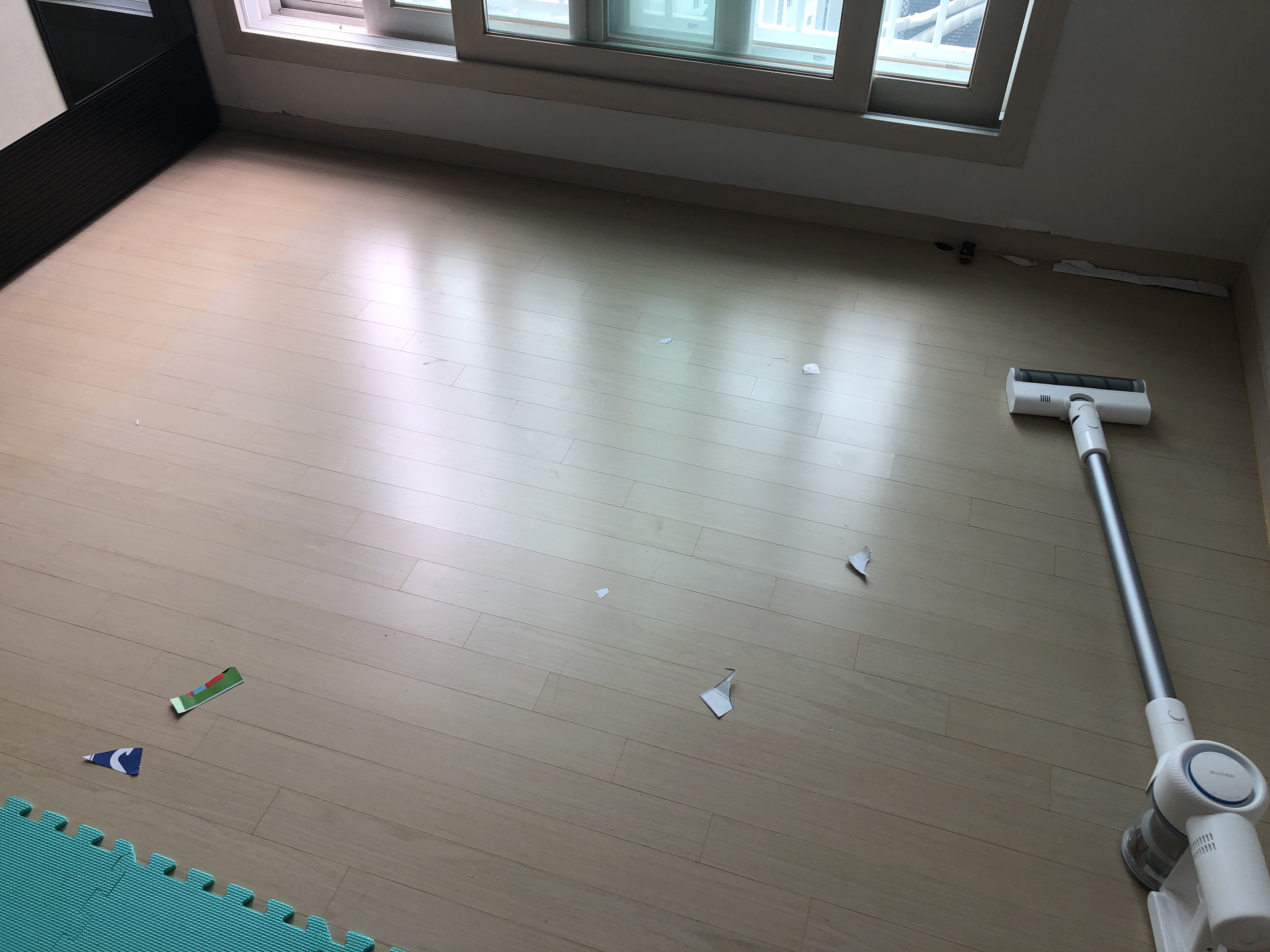 위에 보이는 종이들은 너무 커서 안 빨려간다. 미리 주워서 버리고 청소를 해야된다.
