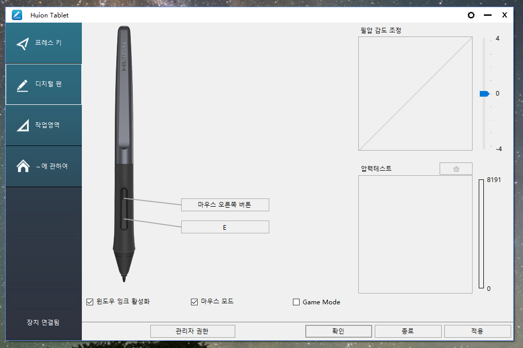 게임 모드는 필압이 사라진다.