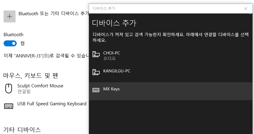 2. MX KEYS가 자동으로 잡힌다.
