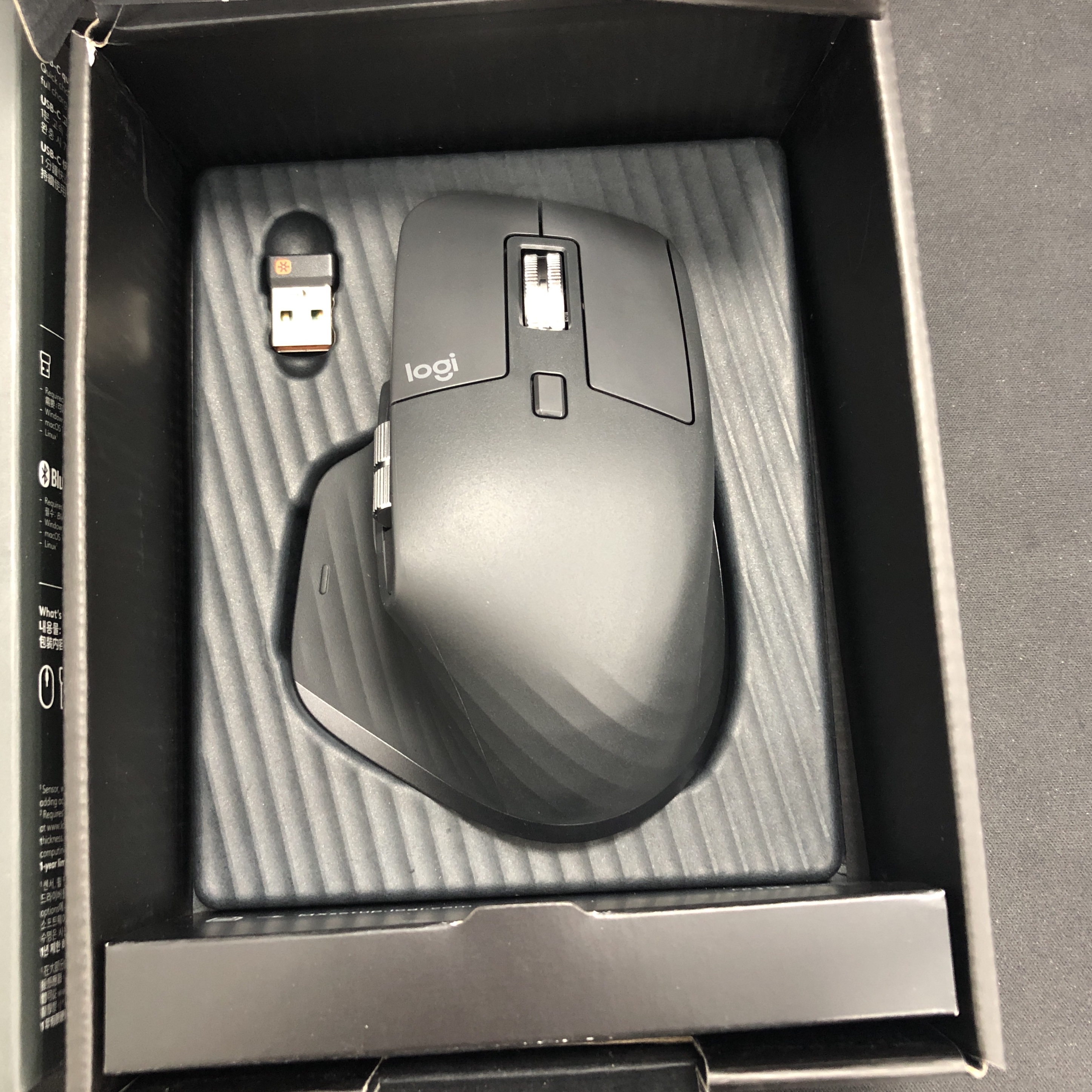 MX MASTER3 이 녀석도 마찬가지로 USB리시버 꼽는 곳이 없다. 일단 박스에 보관하자