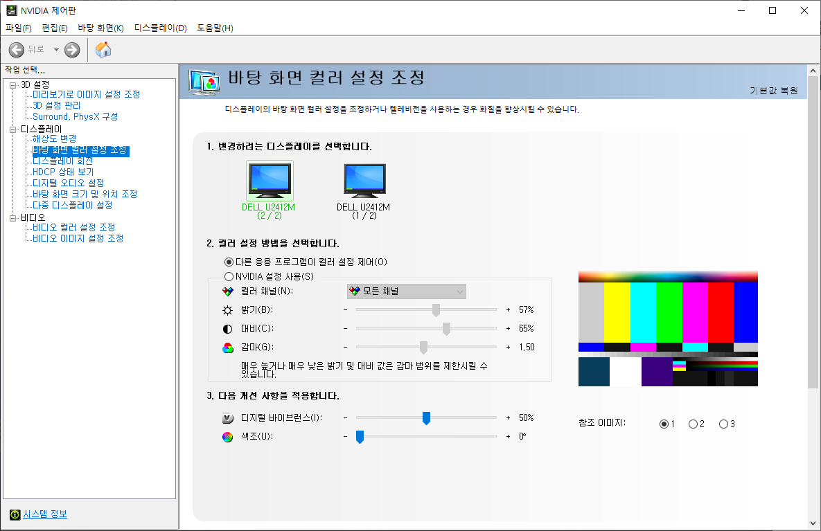 평상시는 다른 응용 프로그램이 컬러 설정 제어를 체크