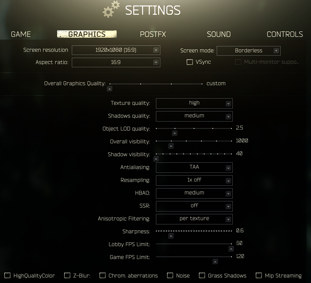 타르코프 그래픽 설정 및 POST FX 필터 적용