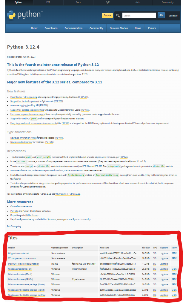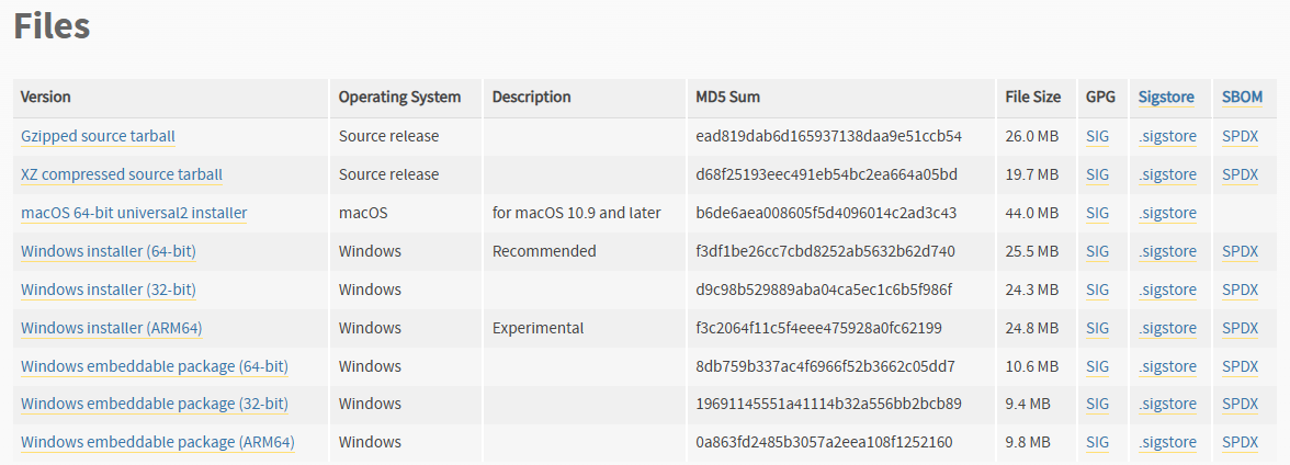 보통은 "windows installer (64-bit)"를 받으시면 됩니다.