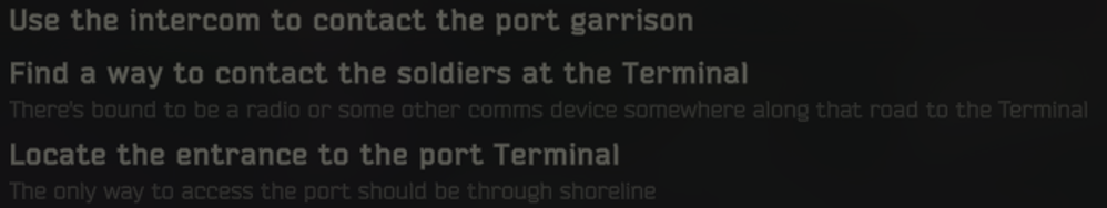 (인터컴을 사용해 항만 주둔군과 접촉하라) - Find a way to contact the soldiers at the Terminal