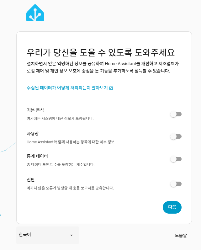 처음 설치하는 것이니 "나만의 스마트 홈 만들기" 클릭합니다.