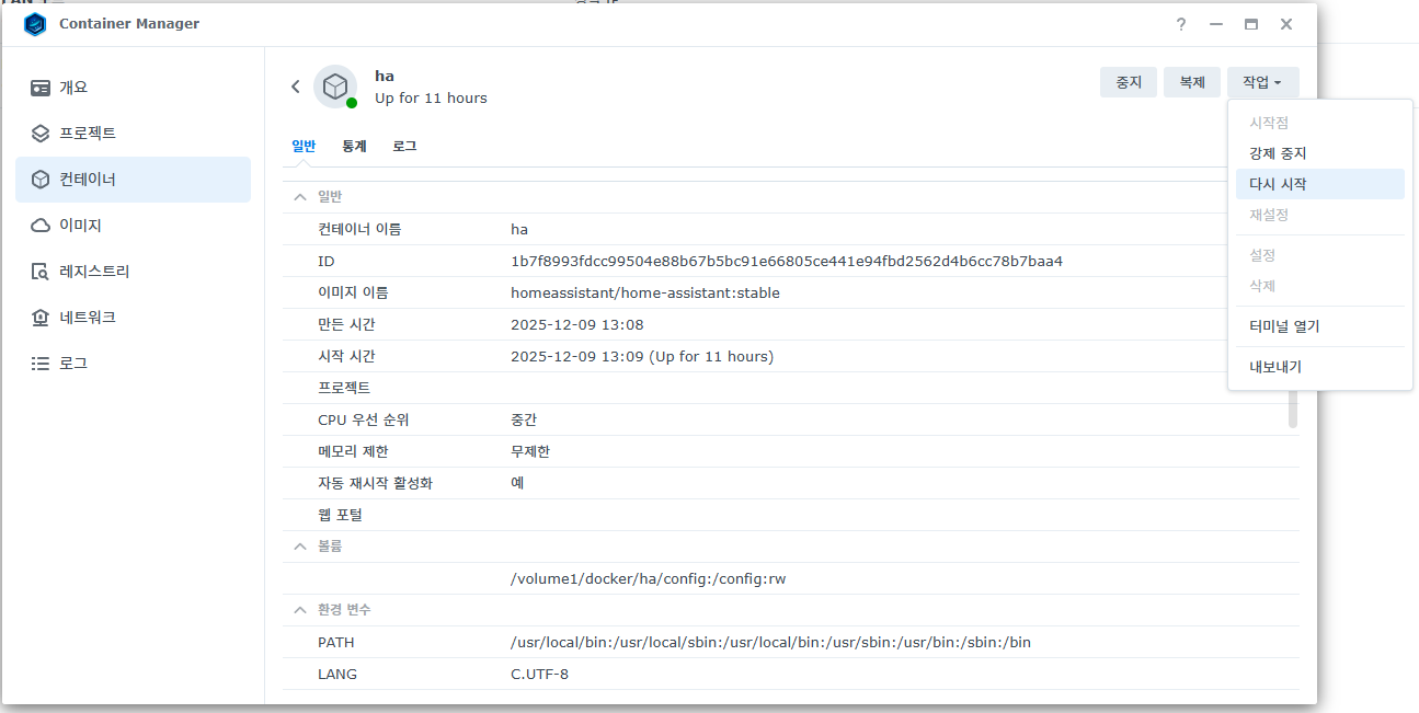 | 시놀로지 나스에 Home Assistant 설치방법 (Container Manger=Docker) (0) | 2025.12.09 |