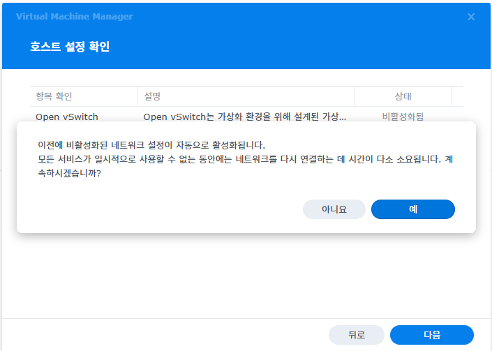 자동시작만 "예"로 변경 나스가 꺼졌을 경우 다시 켰을때 자동으로 VMM도 켜지게 하기위해서 입니다.